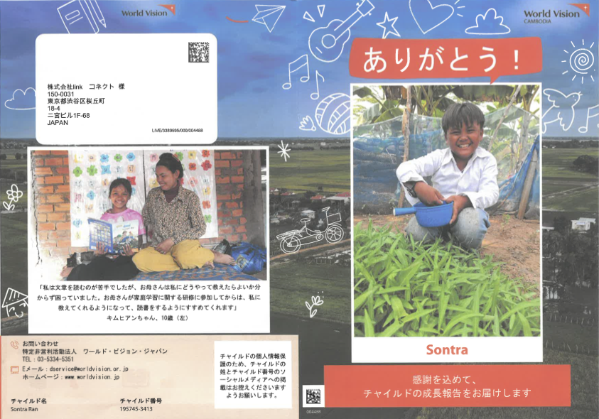 CONNECT(コネクト)では、国際NGOワールド・ビジョン・ジャパンを通じて、毎月チャイルド・スポンサーシップへの寄付をさせていただいております。