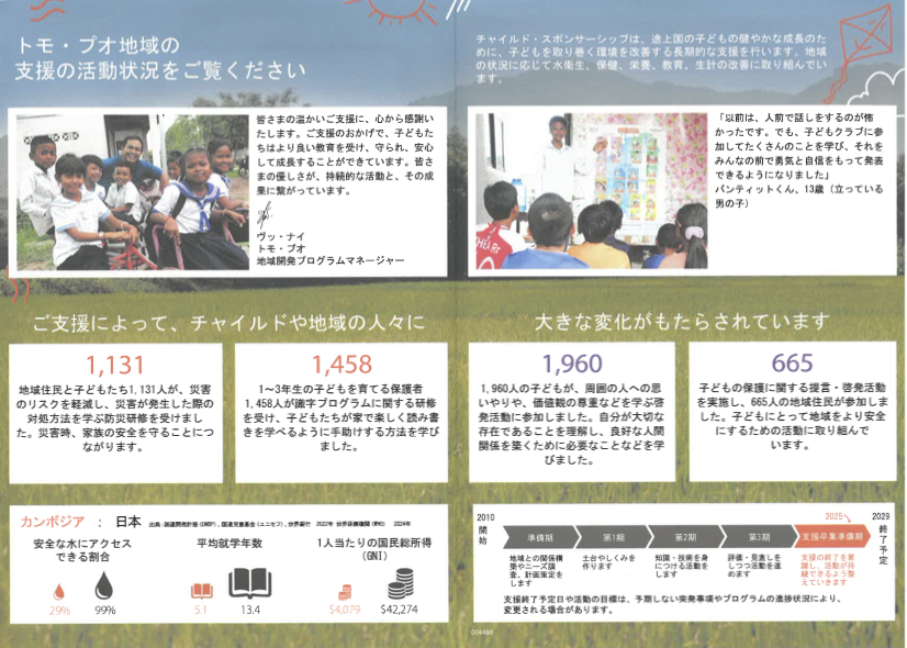 そして今回は、カンボジアの支援地域から「子どもたちの笑顔」と「地域に広がる変化」の報告が届きました。